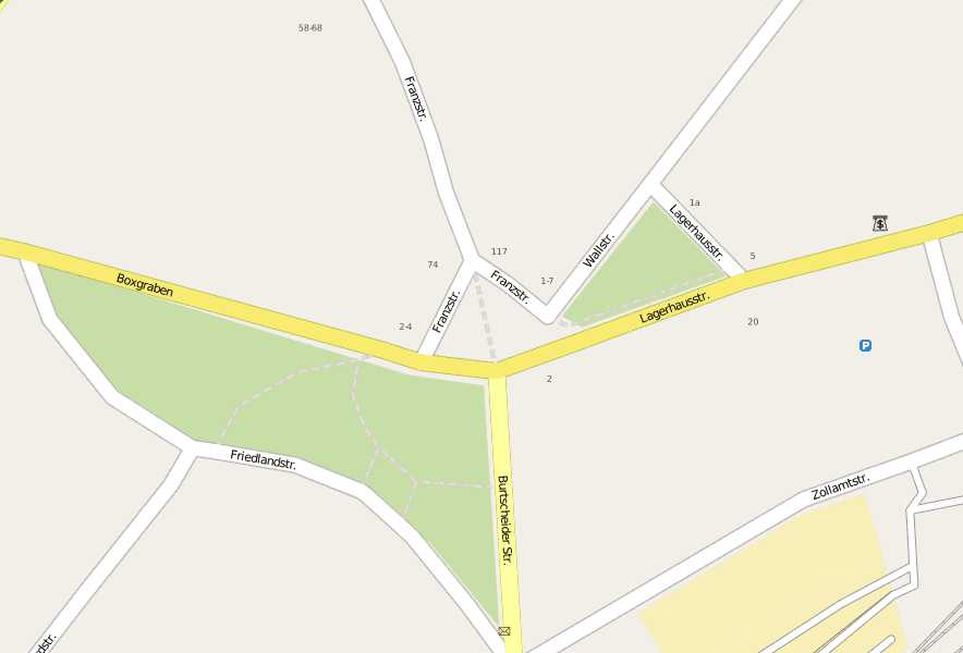 In der Umgebung befinden sich berühmte Plätzen wie Elisenbrunnen, Theater Aachen sowie Marschiertor. Interessant sind die folgenden Landkarten: Aachener Rathaus, Abtei Burtscheid, Suermondt-Ludwig-Museum und Adalbertsturm