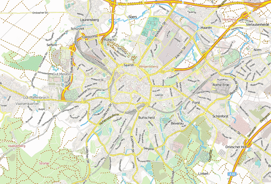 Nicht weit entfernt befinden sich berühmte Touristenattraktionen wie beispielsweise Elisengarten, Elisenbrunnen sowie Theater Aachen. Beliebt sind auch die folgenden Landkarten: RWTH Aachen, Universitätsklinikum Aachen, Suermondt-Ludwig-Museum und Adalbertsturm